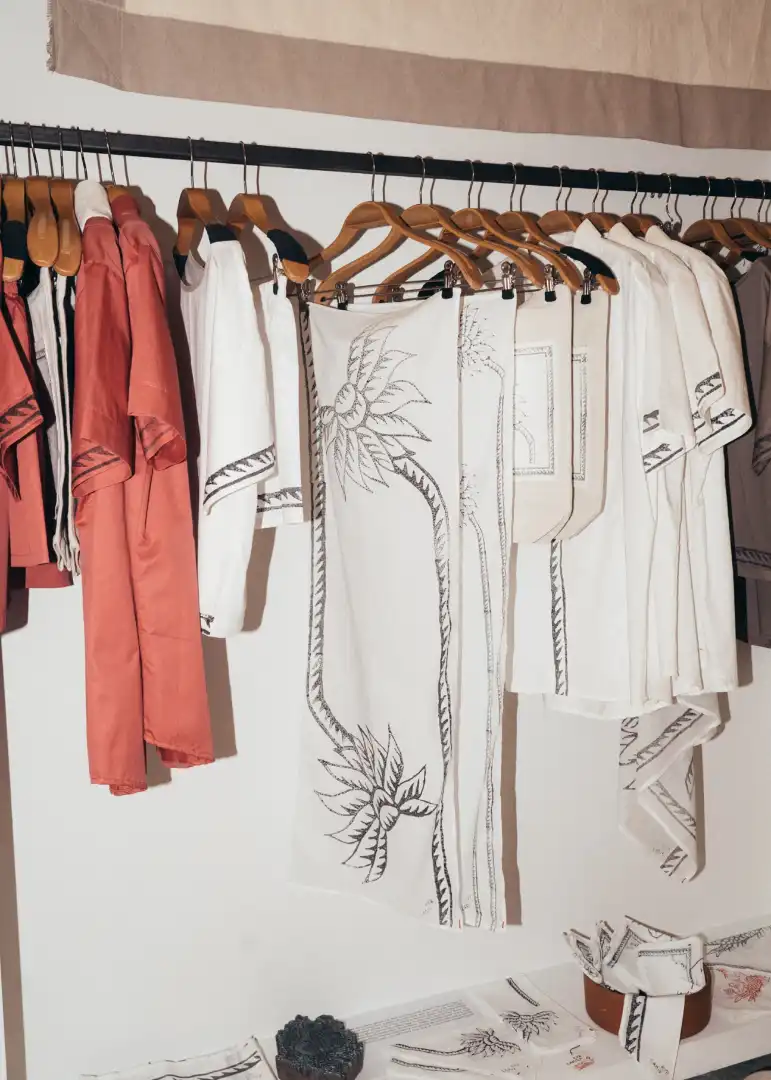 Aphilo Athens brings together the founders’ creative circle (jewellers working with upcycled materials, designers experimenting with natural dyeing and ceramicists) as well as their own work, which ranges from jewellery to furniture and handcrafted fashion. “This was missing in Athens, where these concepts are usually limited to art galleries,” says Pallas, who custom-made all the furniture in the two-storey shop. “We want to show the skills being revived by young people in Athens.” He is leading by example by introducing his own label, Kyr Lakis, in the shop, created as an homage to his grandfather, a craftsman specialising in traditional Greek block printing. “My mum taught me the craft young,” says Pallas, who now prints his grandfather’s drawings, carved on wooden stamps, cotton shirts, silk scarves and tote bags. “We’re the only family with this heritage and it would have been lost otherwise,” “I want to grow this into a fully fledged lifestyle brand.”