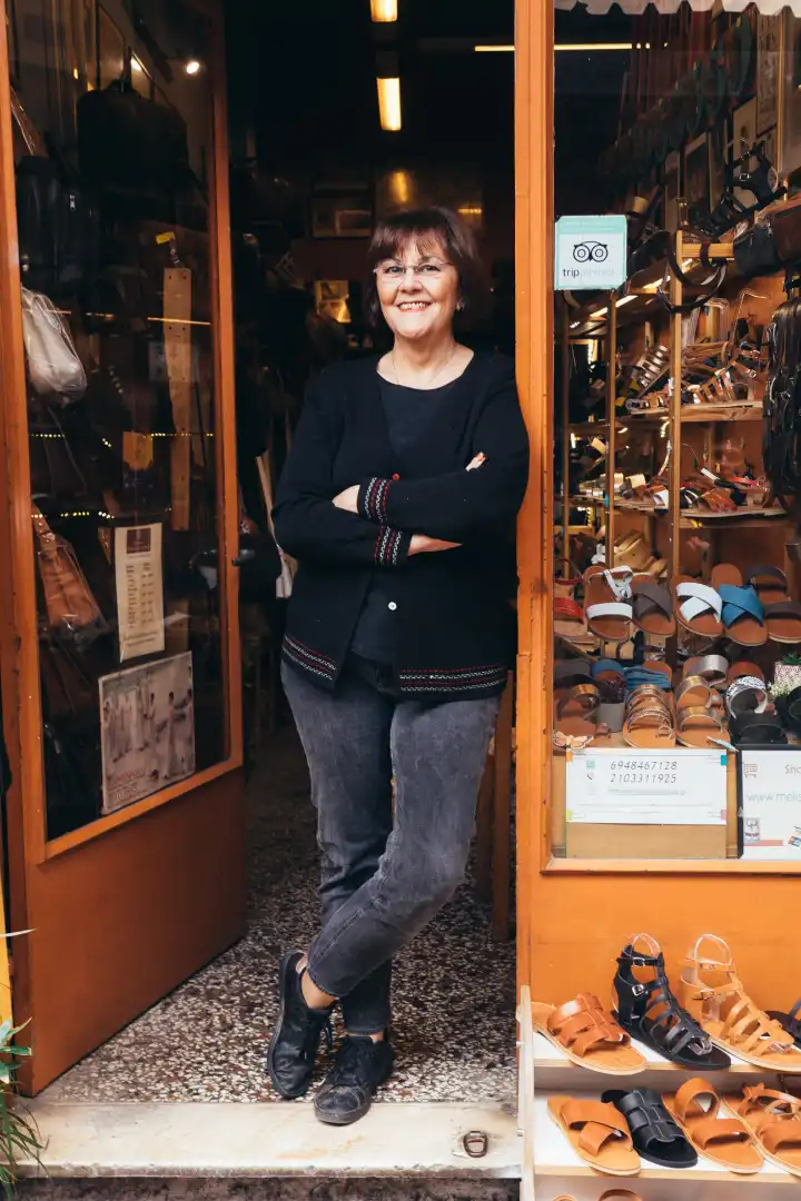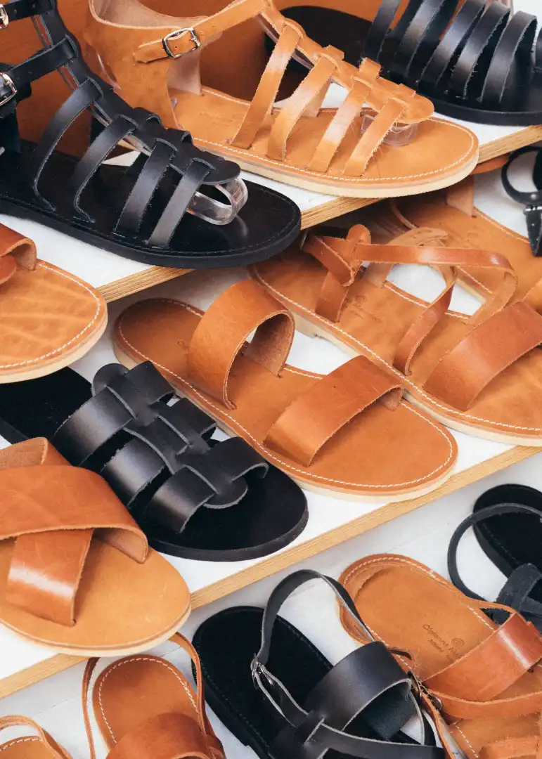 The area is also home to historic, family-run shops that are finally becoming recognised for their meticulously crafted products. Olgianna Melissinos Sandals is one such spot. Discreetly located in a Monastiraki arcade between antique shops and cafés, it offers some of the best made-to-measure leather sandals in town, crafted by owner Olgianna Melissinos, who continues her father’s craft. “I was scared of living up to his name; he was such a character and had a reputation as a sandalmaker but also a poet,” says Melissinos, who now spends her days cycling between her shop and her workshop, where all sandal orders are fulfilled by her and her husband. She is not afraid to experiment with colour and different types of leather, which means that her shop has become the worst-kept secret among discerning travellers who appreciate handmade pieces and classic designs. “We want to highlight that sandals are a sophisticated shoe choice for the summer,” she says. “At the end of the day, sandalmakers in ancient Greece were also politicians,” says Melissinos, who is always on hand to take customers’ measurements and offer personalised recommendations. “The concept of handmade can be quite elitist but I want to make sure that it is as accessible as possible.”