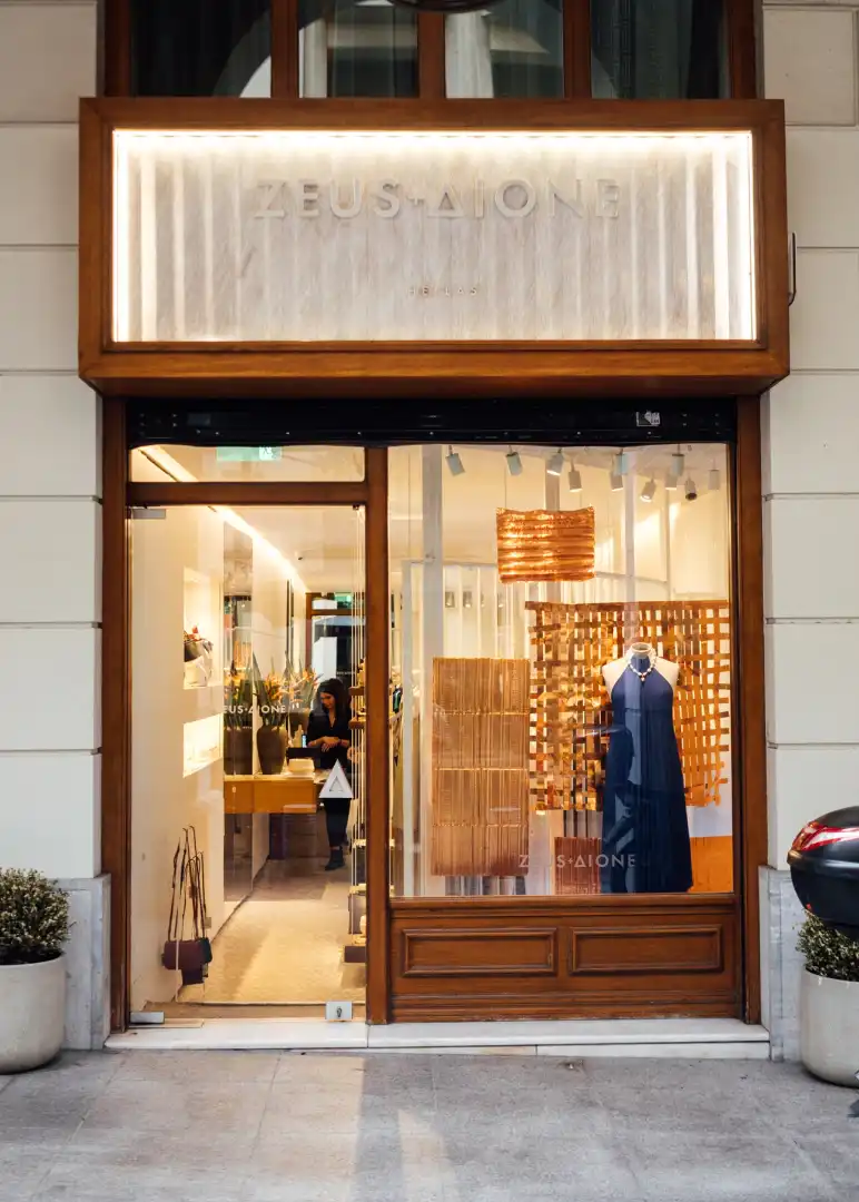 Zeus + Dione is a good example of what a modern Greek luxury label looks like, translating classic Greek design and symbolism into modern clothing, supporting artisanal manufacturers across the country and making its presence strongly felt in the city centre. “Within a half-mile radius, you’ll find us in so many different locations, from the GB Corner Shop inside the Grand Bretagne hotel to the Attica department store and our own flagship,” she says. “International customers come to Zeus + Dione to buy something that represents Greece.”